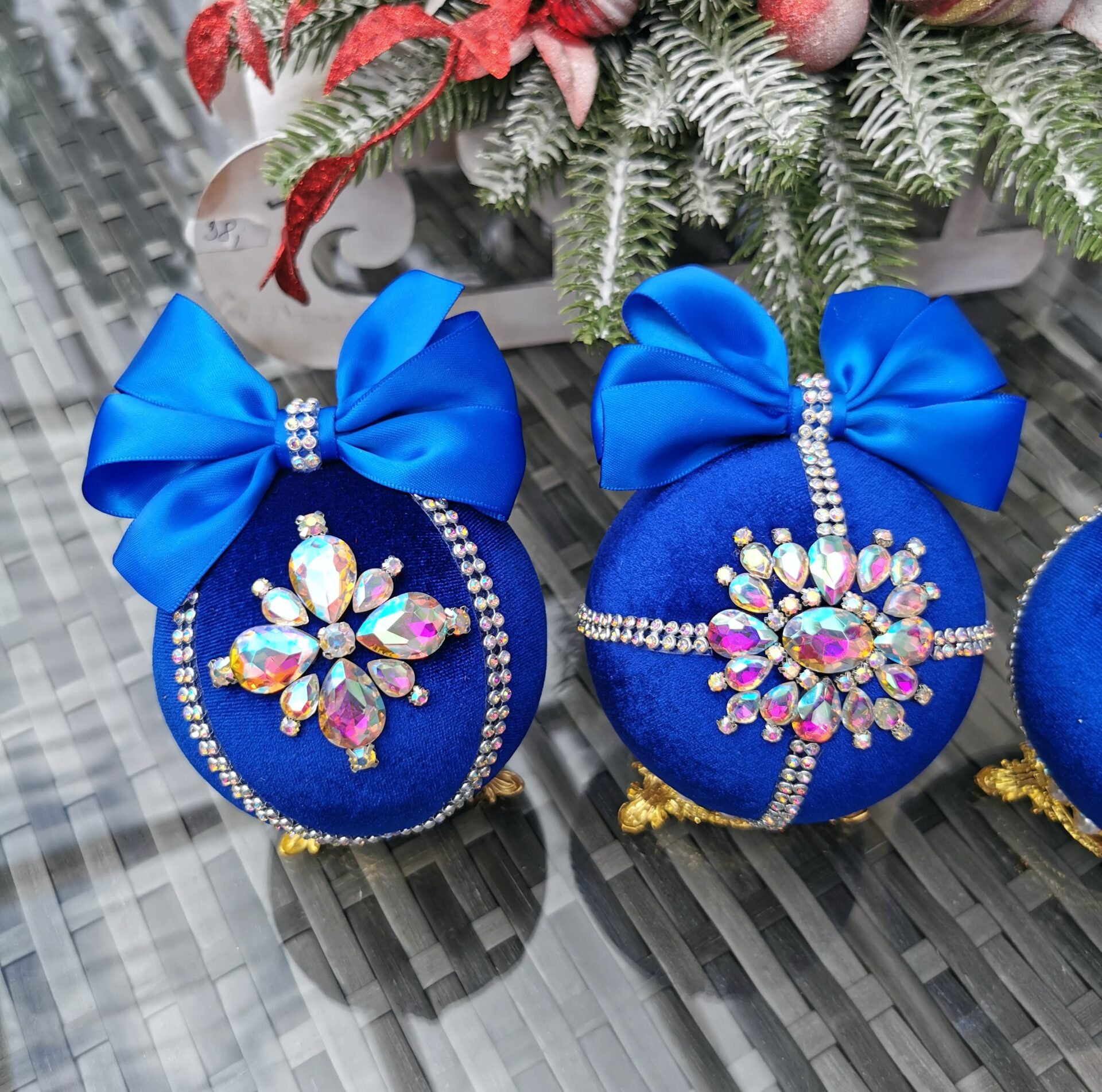 Christmas Rhinestone ornaments- royal blue colour ornaments are hand-made, with a unique rhinestones design, perfect for your home décor!